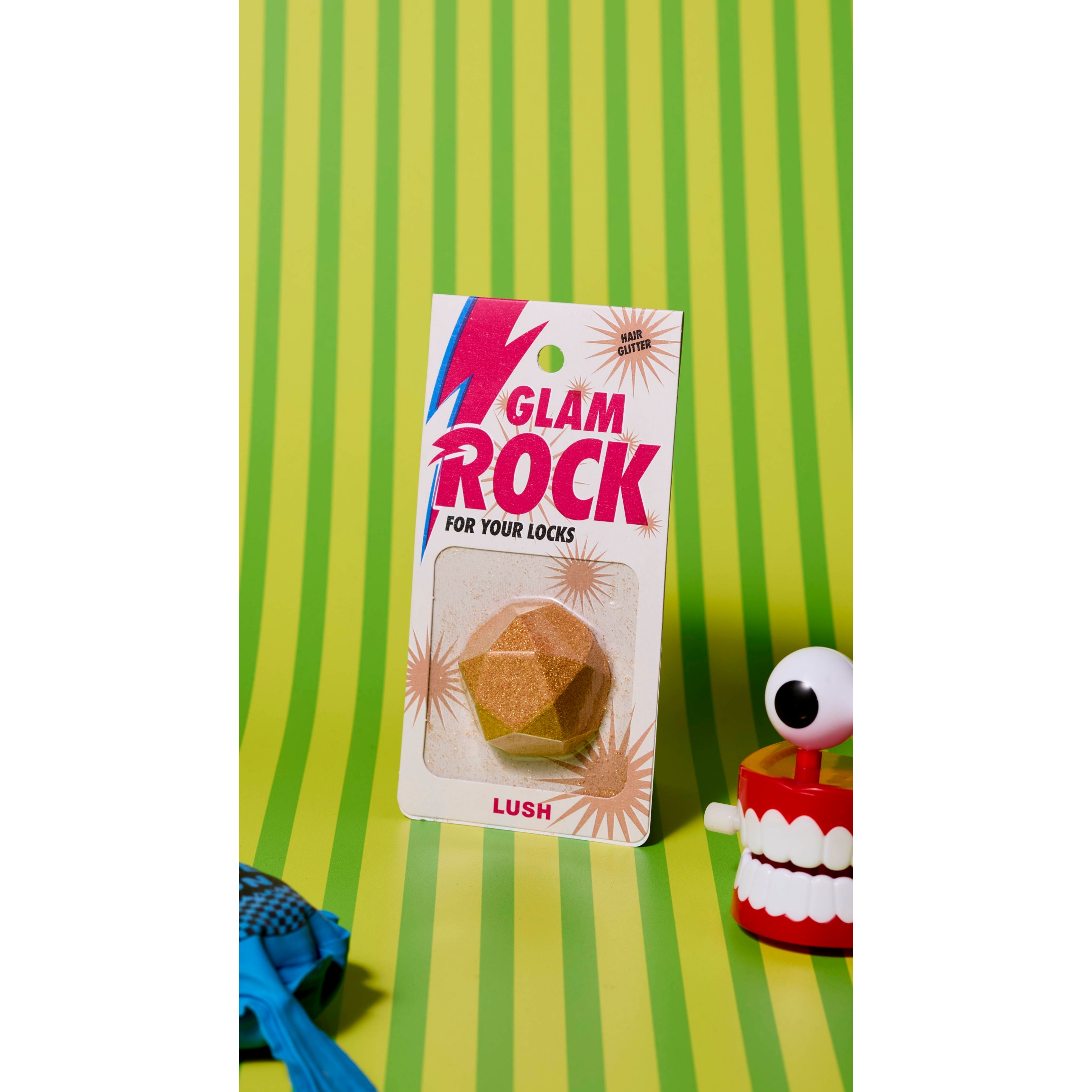 Stroke this glittering rock over dry hair to leave an eye-catching golden glimmer. Pair with electric blue eyeliner, your highest platforms and a rebellious nature.