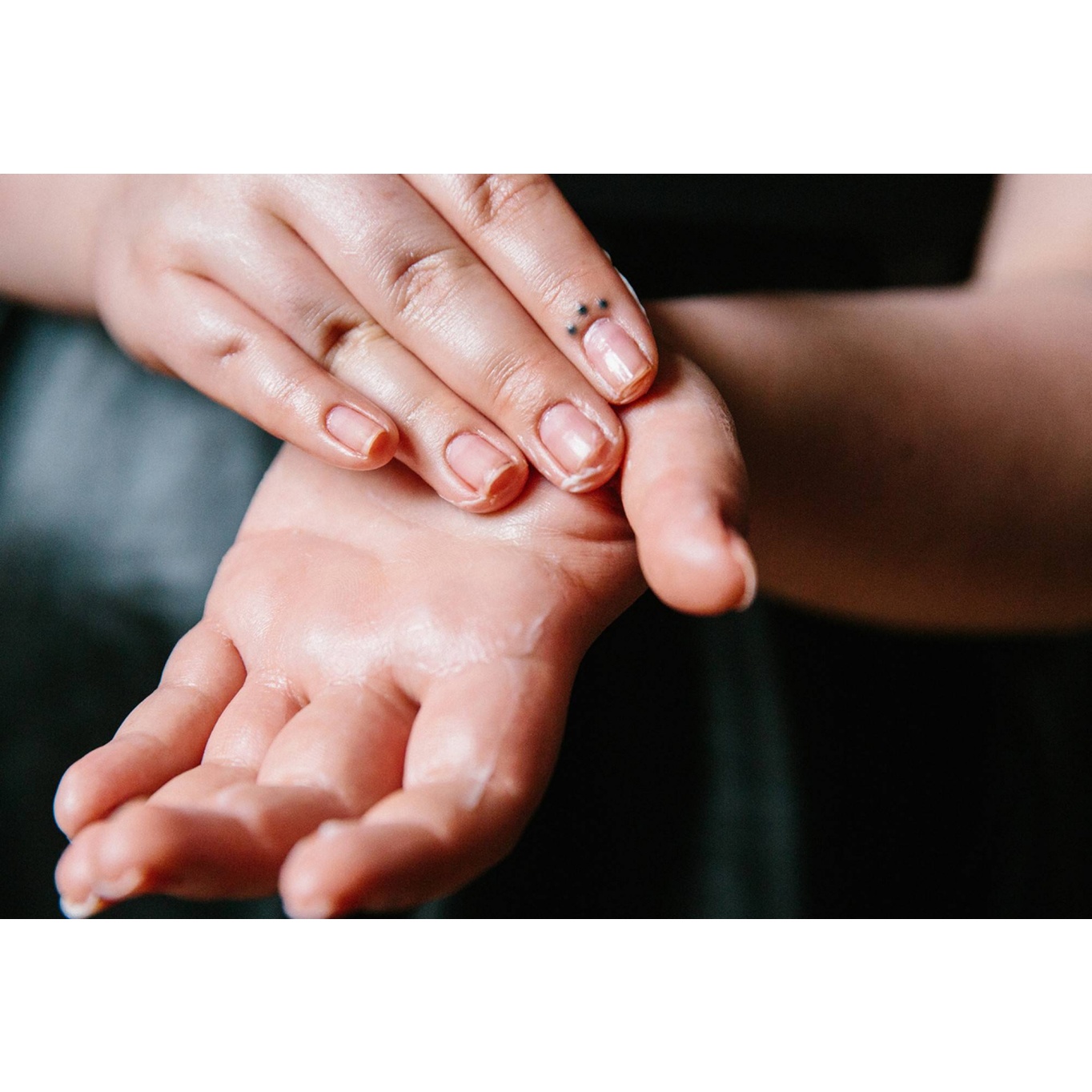 There’s no prescribed way of doing things: just dab or scoop as much as you like into your palms and rub all over.