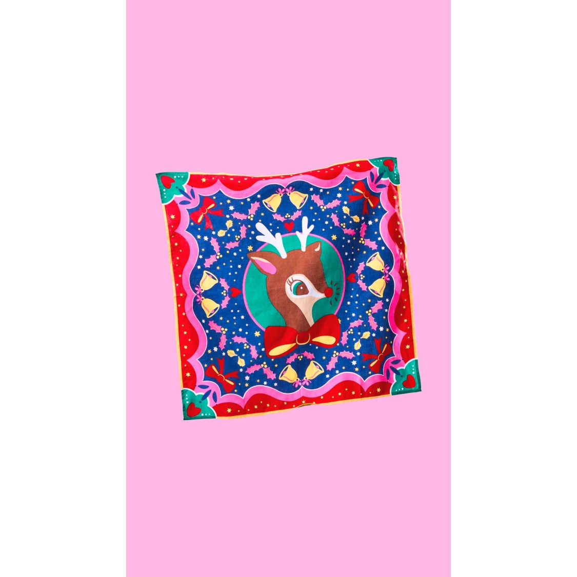 Designed by Charlotte Norman from the Lush Talent Pool, who wanted to create something eye-catching and bold, full of colour, pzazz and joy. “The symmetrical, mandala style design was inspired by the cheerful Polish folk art which adorned the walls of my grandparents’ house when I was a child. The beautiful retro deer steals the show, reminding us of all things Christmas past.”