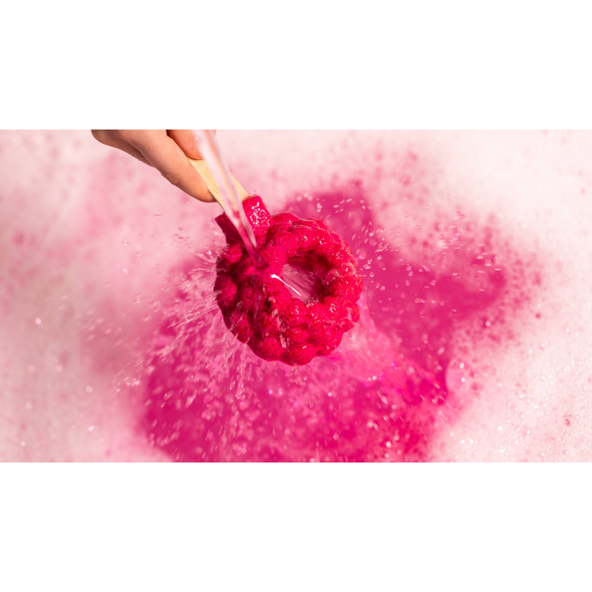 Banish boring bathing by swishing your Raspberry Blower around your tub as it fills. When you’re happy, hold the flat side to your lips and gently blow to release sweet-smelling bubbles bursting with benefits.